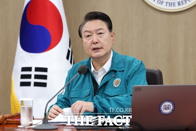 윤석열 대통령은 21일 국무회의에서 한미일 정상회의 성과를 밝히고 을지훈련 정부 대응태세를 점검했다. 이날 서울 용산 대통령실 청사에서 을지 및 제35회 국무회의를 주재하고 있는 윤 대통령. /뉴시스