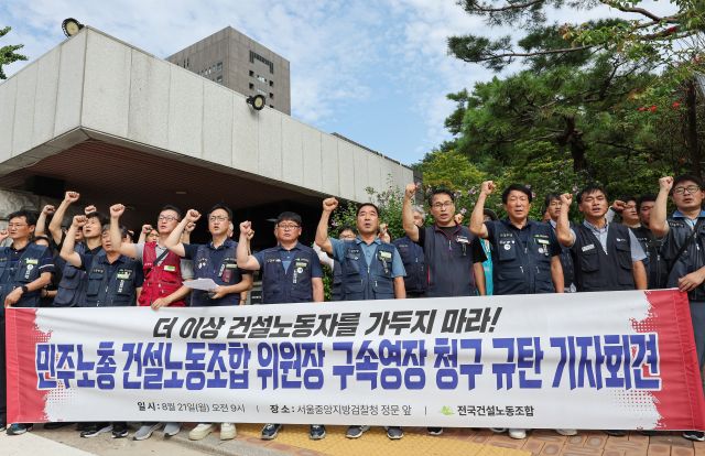 경찰이 민주노총 산하 건설노조 위원장에게 구속영장을 청구한 가운데, 건설노조는 "윤석열 정권은 더 이상 건설노동자를 가두지 말라"고 반발했다.