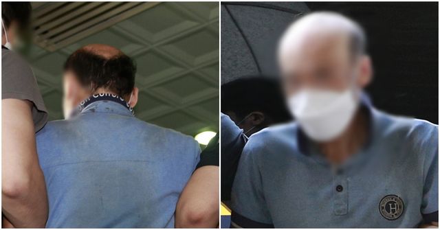 서울 지하철 2호선 합정역 방면으로 향하는 지하철 안에서 흉기를 휘둘러 승객 2명을 다치게 한 50대 남성이 21일 서울 마포구 서부지방법원에서 열린 영장실질심사에 출석하고 있다. / 뉴스1