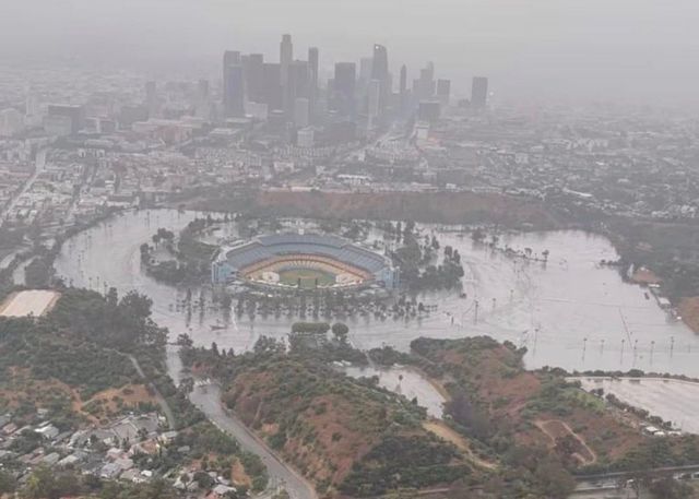 현지 언론보도에 따르면 다저스타디움이 위치한 샤베즈 래빈에도 홍수가 나 다저스타디움 주변 주차장이 모두 침수됐다. 다저스 구단 항공 촬영팀이 헬리콥터를 타고 포착한 영상을 보면, 구장 주변이 온통 흙탕물로 뒤덮여 경기 진행이 불가능한 걸 확인 할 수 있다.