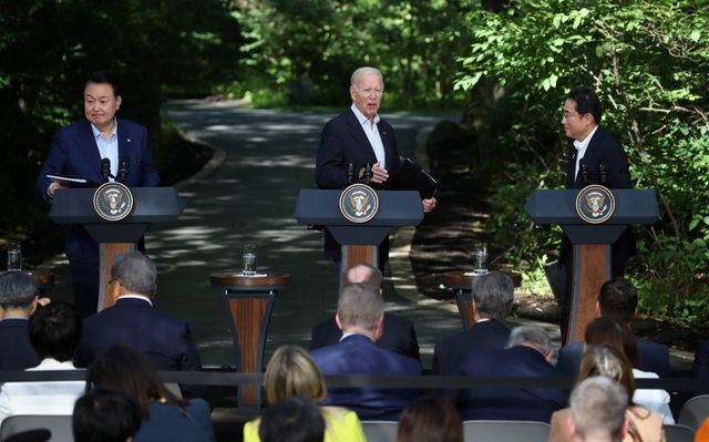한미일 정상이 캠프 데이비드에서 안보, 경제안보 및 첨단 기술 분야에서도 공동 대응력을 강화하기로 했다. 이재명 더불어민주당 대표는 한미일 정상회의에 대해 "일본의 오염수 방류를 저지할 마지막 기회였다"며 "국익 우선이라는 외교의 제1원칙이 무너졌다"고 주장했다. 이에 여당에서는 "민주당의 폄하는 질투로 가득 찬 피해의식에 불과하다"고 비판했다. 민주당이 한미일 정상회담을 폄하하면서 여야의 정쟁이 이어지고 있다.