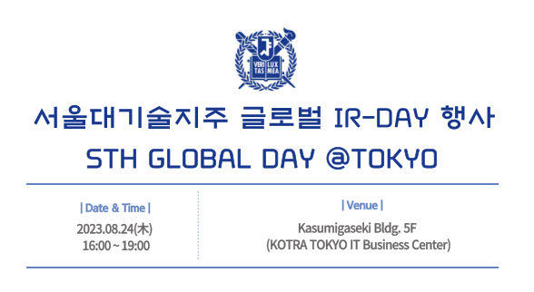 서울대기술지주는 오는 8월 24일 일본에서 글로벌 IR데이 행사 “STH GLOBAL DAY @TOKYO”를 개최하여 국내 스타트업의 일본 진출 활성화에 나선다.