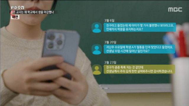 특히 이날 오후에는 A씨 남편 B씨가 직접 학교를 찾기도 했다. 이러한 항의에 고인은 피해 학생 학부모 C씨에게 사실 확인을 요청하는 문자를 하이톡으로 보냈다.
