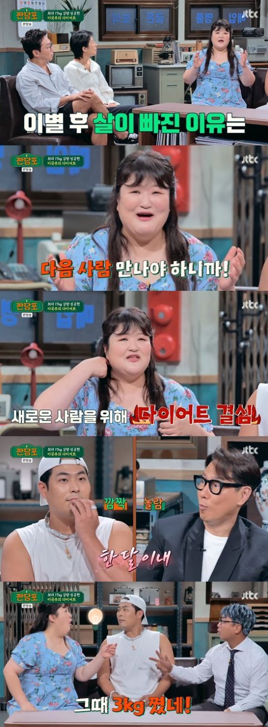 다이어트를 하게 된 계기는 전 남자친구와의 이별 때문이었다고 했다. 이국주는 “1년 반 전에 이별을 하고 나서 다이어트를 시작했다. 독해서가 아니라, 다음 사람 만나야 하니까”라고 고백해 웃음을 안겼다.