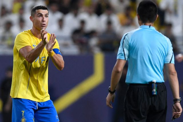 전반 막판 호날두의 얼굴이 붉게 상기됐다. 오른쪽 측면에서 올라온 공을 호날두가 몸을 날려 바이시클 킥으로 연결했다. 팔을 뻗은 수비수에게 맞은 듯했으나 주심은 휘슬을 불지 않았다. 호날두를 비롯한 알 나스르 선수들의 항의도 받아들여지지 않았다.