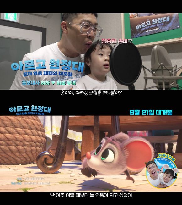 영화 '아르고 원정대: 꼬마 영웅 패티의 대모험'은 영웅이 되고 싶은 생쥐 딸 '패티'와 고양이 아빠 '샘'이 위기에 빠진 도시를 구하기 위해 전설의 '아르고 원정대'를 깨워 대모험을 떠나는 판타지 어드벤처 애니메이션이다. '패티'와 '샘' 부녀처럼 사랑스러운 매력을 가진 하하, 하송 부녀가 홍보대사로 나선다.