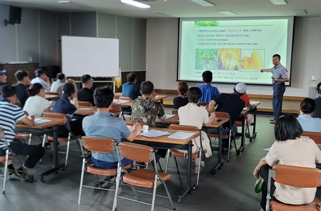교육 주요 내용으로는 애호박 품질 향상을 위한 핵심 기술과 병해충 예방요령이었으며 재배 현장 애로사항 해결을 위한 질의응답도 함께 진행했다.
