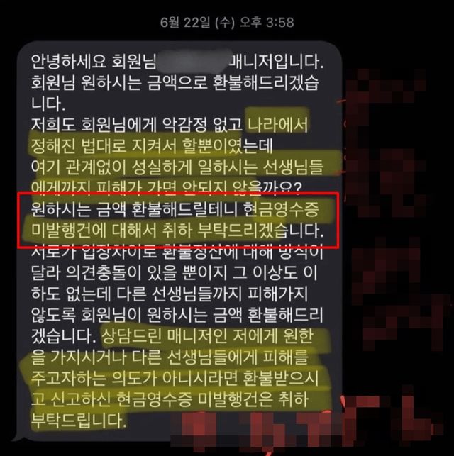 그러자 꿈쩍도 안 하던 헬스장이 '원하시는 금액으로 환불해드리겠다'며 결국 백기를 들었다. '현금영수증 미발행 건을 취하해달라'는 애원과 함께.