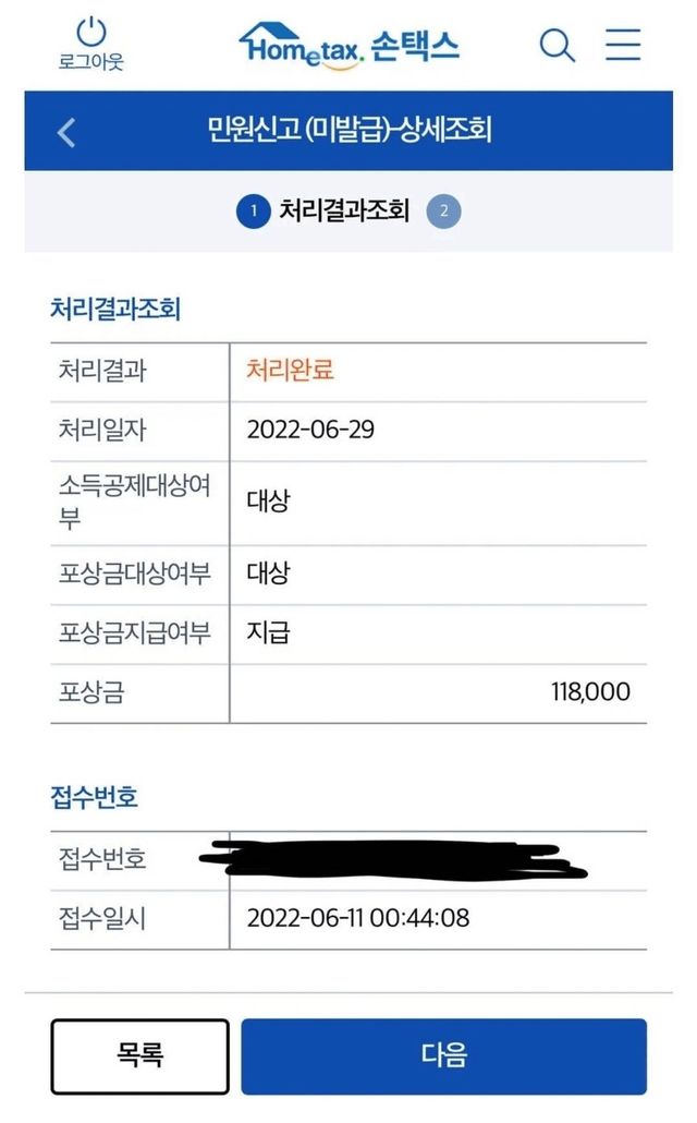 A씨가 국세청으로부터 받은 포상금 지급 내역