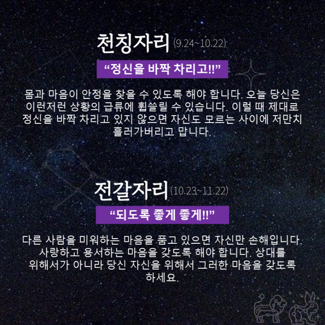 Δ 천칭자리 : 정신을 바짝 차리고!!