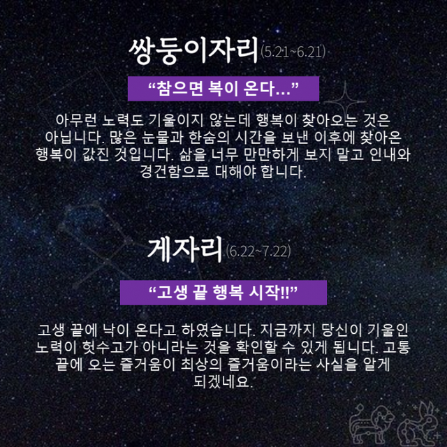 Δ 쌍둥이자리 : 참으면 복이 온다…