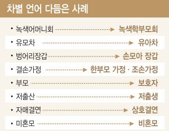 정계에 따르면 국회에서 발언한 ‘절름발이’ 표현 건수만 따져봐도 16대 60건, 17대 40건, 18대 34건, 19대 52건, 20대 38건에 달했다. 일부 공문서에는 ‘자매결연’(→상호결연)과 ‘미혼모’(→비혼모), ‘불우이웃’(→어려운 이웃) 등 차별어 사용이 여전해 개선이 필요한 것으로 나타났다.