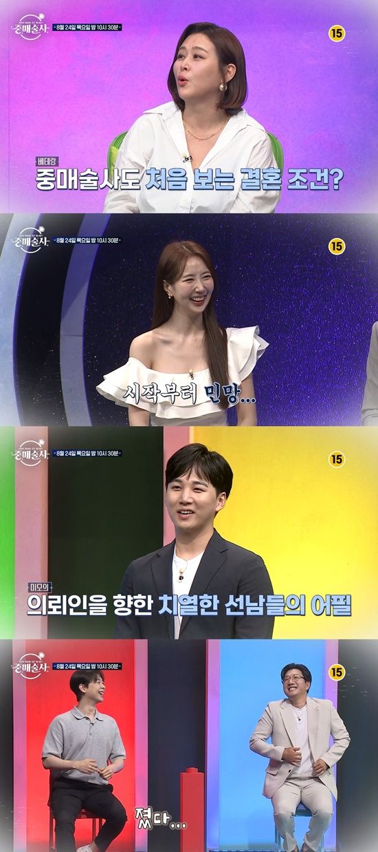 계속되는 선남들을 당황스럽게 만든 조건 공개에 프로팩폭러 중매여왕 박정원 그린 중매술사는 "중매 일을 14년 넘게 했지만 이런 조건은 처음이다. 남자분 입장에선 맞추기 힘든 조건"이라며 탄식하기도 했다.