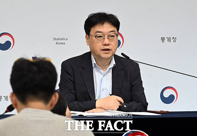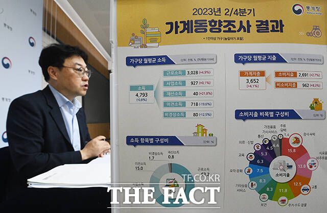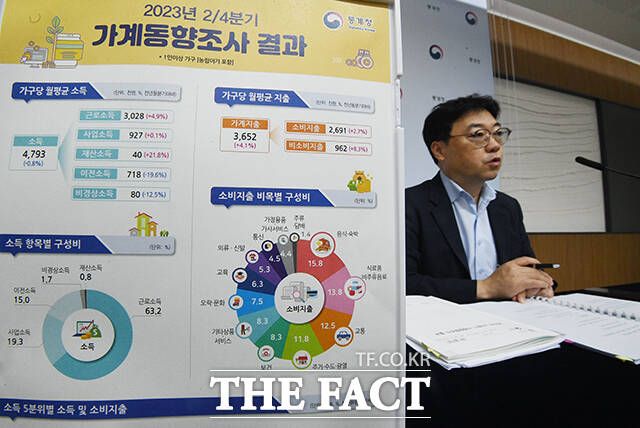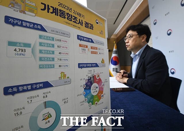 [더팩트ㅣ세종=이동률 기자] 이진석 통계청 가계수지동향과장이 24일 오전 세종시 정부세종청사에서 2023년 2/4분기 가계동향조사 결과를 발표하고 있다.