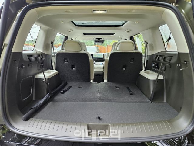 파주시 카페에 도착해 좀 더 자세히 차량을 살펴봤다. 테일게이트(차 뒤쪽 문)를 열어보니 테라스 콘셉트로 실내를 구성했다는 현대차의 말이 이해가 갔다. 2열 좌석을 접으니 평평한 평상 같은 실내가 만들어졌다. 무엇보다 테이게이트가 충분히 넓어 공간의 개방성이 극대화됐다. 가족들끼리 캠핑을 가거나 야외 활동을 하기에 안성맞춤처럼 보였다.