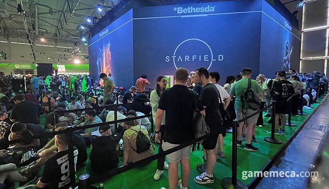 ▲ 스타필드는 직접 시연이 불가능한 프레젠테이션이었음에도 대기열이 길었다 (사진: 게임메카 촬영)