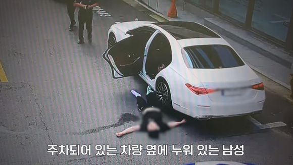 서울경찰 유튜브에는 당시 상황 담긴 영상이 게재됐다. 당시 A씨는 차 운전석 문을 활짝 열어둔 채 차량 옆에 대자로 드러누워 있었다.