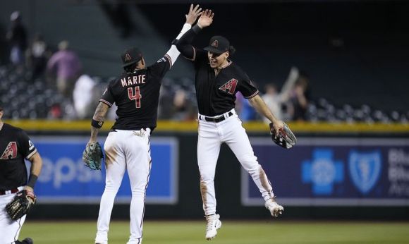 MLB 애리조나 선수들이 텍사스와 홈 경기에서 승리를 거둔 뒤 세리머니 하고 있다. [사진=뉴시스]
