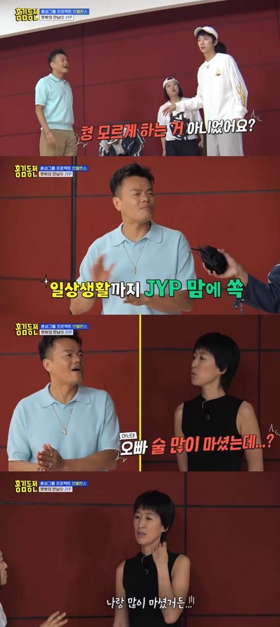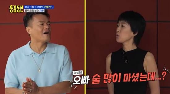 이에 김숙이 "오빠도 그렇지 않냐"라며 박진영을 칭찬했지만, 홍진경은 "오빠 술 많이 마셨는데. 저랑 많이 마셨다"라고 박진영을 폭로했다.