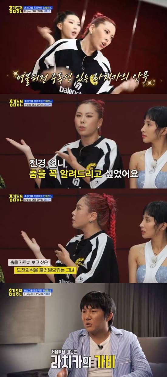 라치카는 그간 제작했던 K-POP의 안무를 선보여 감탄을 자아냈다. 그러면서 라치카의 가비는 홍진경을 가르쳐 보고 싶다며 도전 의식을 불태워 호기심을 자극했다.