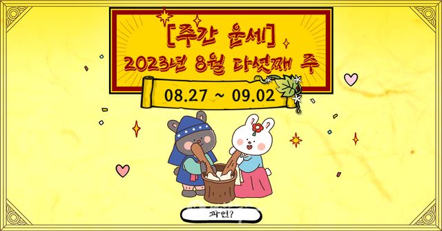2000년 - 유난히 좋은 조건에 마음이 흔들릴 수 있으나, 그만큼 위험한 변수가 많이 도사리고 있습니다. 충분히 감수할만한 리스크라면 나름대로 당신에게 기회가 되어주는 한 주가 될 것입니다.