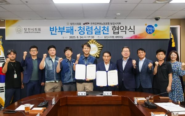 [파이낸셜경제=김윤정 기자] 당진시의회는 24일, 전국공무원노동조합 당진시지부와‘반부패 청렴 실천’협약을 체결했다.