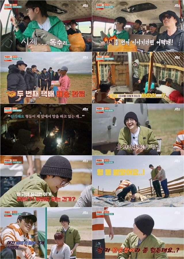 JTBC ‘택배는 몽골몽골’은 ‘용띠절친’ 김종국-장혁-차태현-홍경민-홍경인과 열다섯 살 차이 나는 막내 강훈이 택배 배송을 위해 떠난 몽골에서 고군분투하는 케미 폭발 여행기. 매주 금요일 밤 11시에 방송된다.