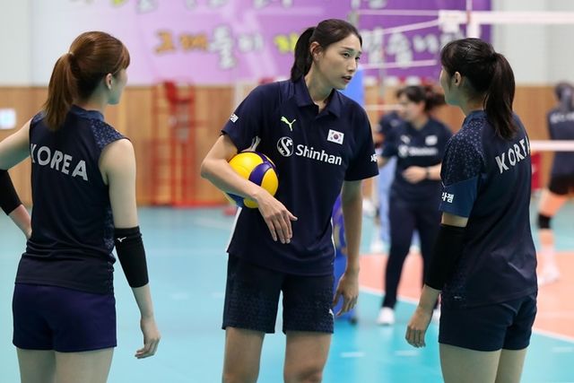 대한민국 여자배구 대표팀 김연경 고문(어드바이저)이 지난 5월 충북 진천선수촌에서 대표팀 선수들의 훈련을 돕고 있다. / 뉴스1