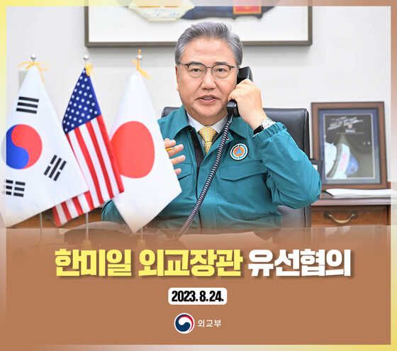 외교부는24일 안토니 블링컨 미국 국무장관 및 하야시 요시마사 일본 외무대신과 전화 통화를 갖고, 이날 ‘우주발사체’ 명목의 북한 탄도미사일 발사에 대한 3국 간 공동 대응방안과 관련해 협의했다고 밝혔다.