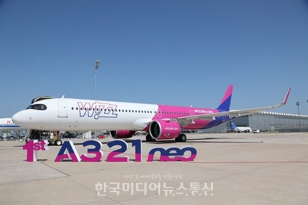 지난 6월 27일 톈진(天津)의 에어버스 아시아 최종 조립 라인에서 헝가리 위즈 에어(Wizz Air)에 인도한 A321neo기 모습. (사진=신화통신 제공)