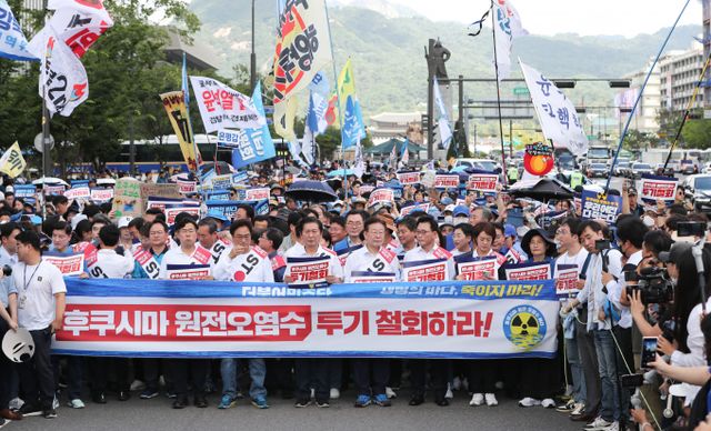 민주당은 전날 오염수 방류를 시작한 일본 정부와 이를 윤석열 정부를 규탄하기 위한 범국민대회를 개최했다. 민주당은 촛불집회·비상의원총회·거리행진에 이어 범국민대회까지 열면서 대정부 공세를 강화하고 있다.