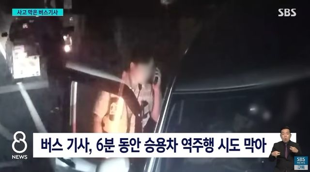 관광버스 기사가 고속도로에서 역주행하던 차량을 발견하곤 약 6분 동안 그 (차량) 앞을 막았기 때문이다.