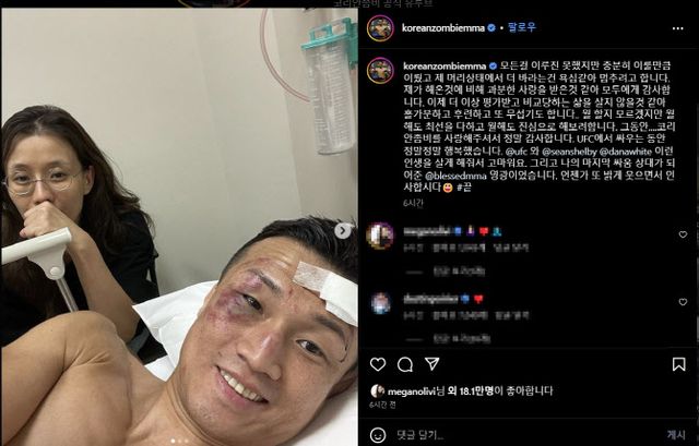[싱가포르=이데일리 스타in 이석무 기자] 맥스 할로웨이(32·미국)와 맞대결에서 아쉬운 KO패를 당한 뒤 은퇴를 공식 선언한 ‘코리안 좀비’ 정찬성(36·코리안좀비MMA)이 자신의 SNS에 솔직한 심경을 털어놓았다.
