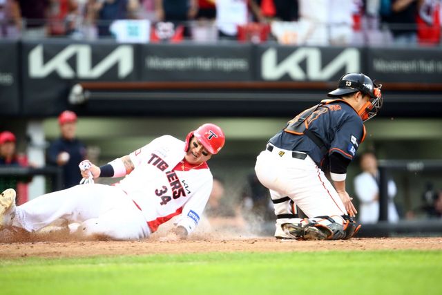 KIA 타이거즈는 한화 이글스를 5-2로 누르고 4연승을 질주, 두산 베어스를 밀어내고 5위로 올라섰다. 한화는 속절없는 6연패. 문동주와 윤영철의 '신인왕 후보' 맞대결에서 문동주가 5이닝 5실점, 윤영철은 4이닝 2실점(1자책점)을 기록했다. 한화가 먼저 2점을 올렸지만 차근차근 따라붙은 KIA가 최형우의 역전 2타점 2루타로 승부를 갈랐다.