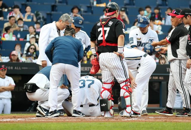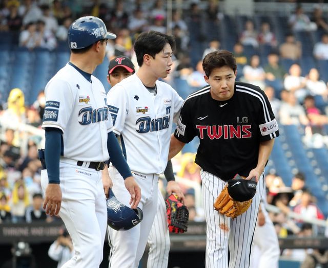 이 가운데 1회부터 선발 임찬규가 헤드샷으로 퇴장을 당하는 변수가 일어났다. 1회말 손아섭과 박민우에게 연속 안타를 허용하면서 무사 1・3루에 몰린 상황, 임찬규가 박건우에게 던진 초구 직구가 박건우의 머리로 향했다.