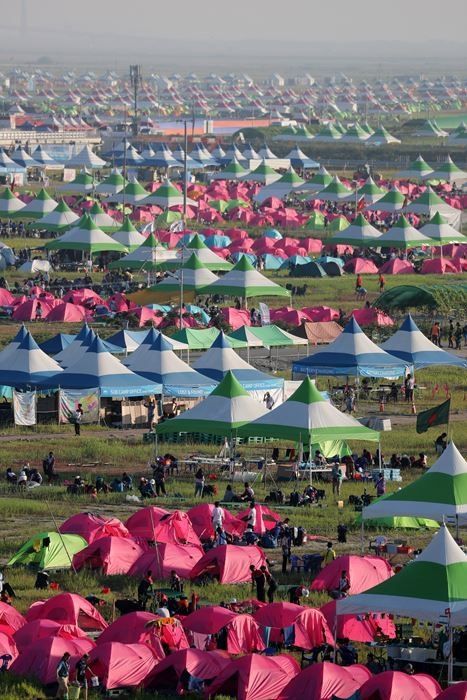 예상대로 첫날부터 병원 앞에는 온열질환 증상을 보이는 환자들로 넘쳐났다. 수백명이 대기했지만 100개도 되지 않는 병상으로 사태를 해결하기는 역부족이었다. 악취가 심한 화장실과 샤워장 상황 크게 다르지 않았다. 스카우트 관계자는 “샤워를 해도 하지 않는 것과 차이가 없었다. 물과 섞인 갯벌 흙이 굳어버린 채로 배수구를 막아서 벌레도 많았다”고 말했다.