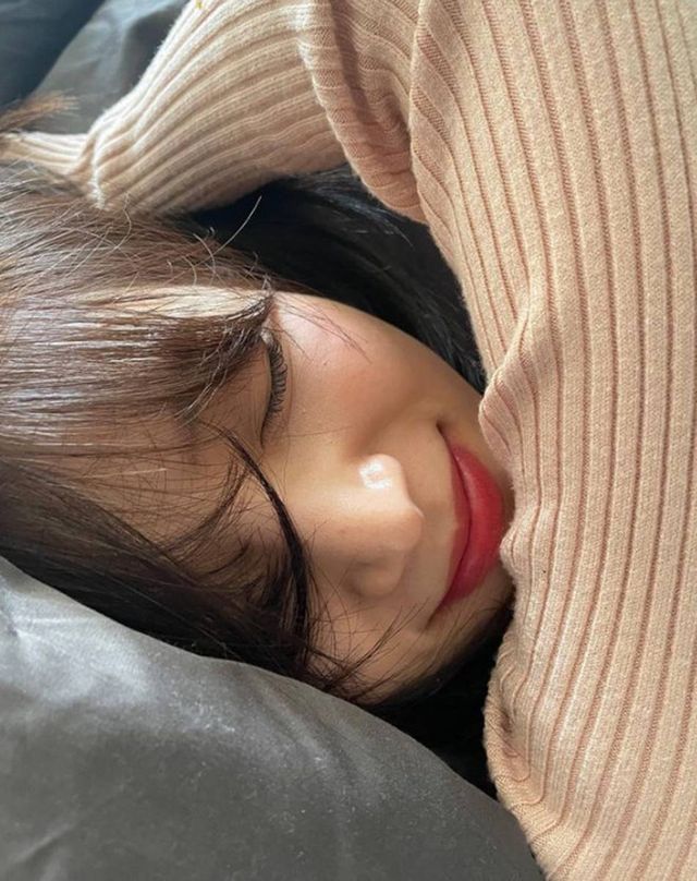 눈을 감은 채 미소 짓는 김지영