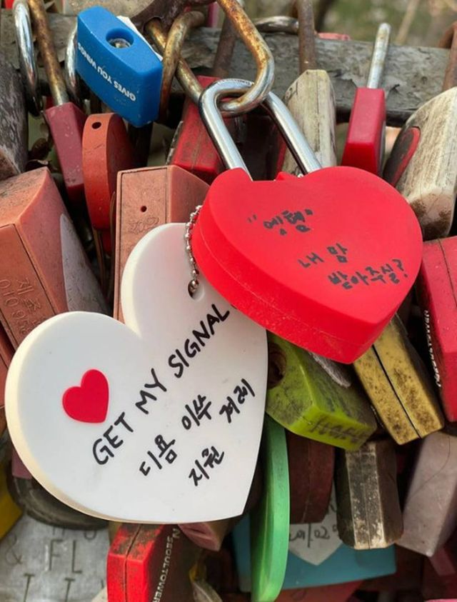 촬영 중에 남산에서 건 하트 자물쇠
