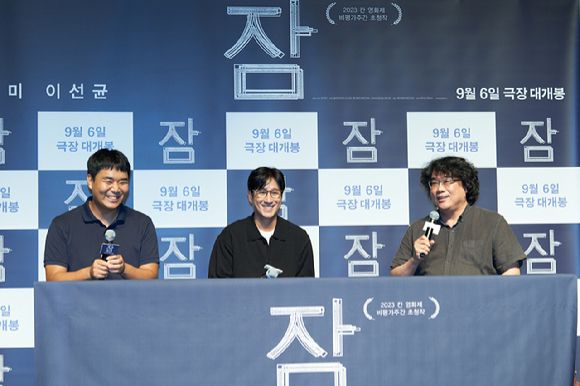 지난 26일 서울 잠실 롯데시네마 월드타워에서 '잠'의 유재선 감독, 배우 이선균 그리고 봉준호 감독이 참석한 '잠'의 스페셜 GV(관객과의 대화)가 진행됐다. 이번 스페셜 GV는 서울, 부산, 대전, 대구, 김포의 전국 5대 도시에서 진행된 최초 시사회인 동시에 상영 종료 후 GV가 라이브로 동시 중계됐다.