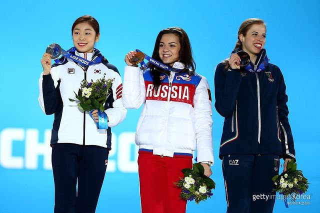 소치 동계 올림픽 당시 김연아와 소트니코바(가운데).