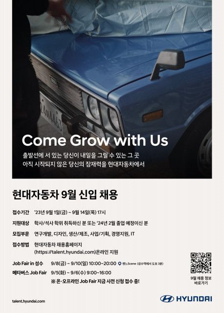 잡페어와 메타버스 채용설명회는 현대차 채용 홈페이지에서 다음 달 3일(일)까지 신청하면 참가할 수 있다.