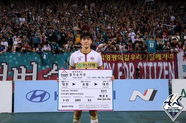 전북전에서 대전 팬들은 배준호에게 '대전→유럽→대전' 기차표를 줬다. 유럽을 갔다가 다시 돌아오라는 의미였다. 배준호는 “당연히 유럽 생활을 마치고 국내로 돌아온다면 대전으로 복귀할 생각이다. 정말 감사한 마음을 갖고 있다. 구단에서도 쉽지 않은 결정일 텐데 선수를 생각해서 이적을 허락해주셨다. 그 부분에 대해서 정말 감사하게 생각하고 있다. 팬분들도 정말 많은 응원을 보내주셔서 늘 감사한 마음을 갖고 뛰겠다. 가서 좋은 경기력으로 보답하겠다. 나한테 대전은 집이다”고 감사함을 표했다.