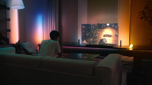 '뮤직 싱크(Music Sync)'와 '휴 싱크(Hue Sync)' 기능을 활용해 집에서의 여가시간을 더 즐겁게 보내는 방법도 소개한다. 뮤직 싱크와 휴 싱크는 각각 갤럭시 폰에서 재생되는 음악, TV의 콘텐츠에 따라 조명이 변하는 기능이다. 영상에서 손 선수는 화면의 색감과 움직임에 따라 변하는 조명과 함께 자신이 좋아하는 게임을 더 몰입감 있게 즐긴다.