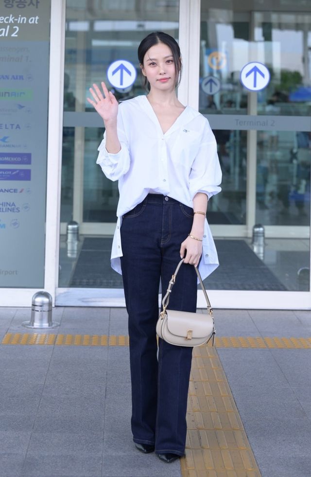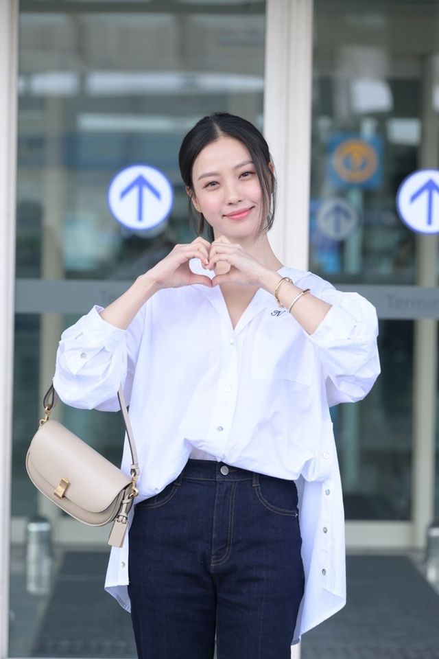 출국에 앞서 고민시는 러블리한 미소와 함께 가을 분위기가 물씬 느껴지는 스타일링으로 시선을 사로잡았다. 루즈핏 셔츠와 부츠컷 팬츠에 베이지 컬러의 숄더백으로 포인트 줘서 세련된 무드의 시크한 공항 패션을 완성한 것.