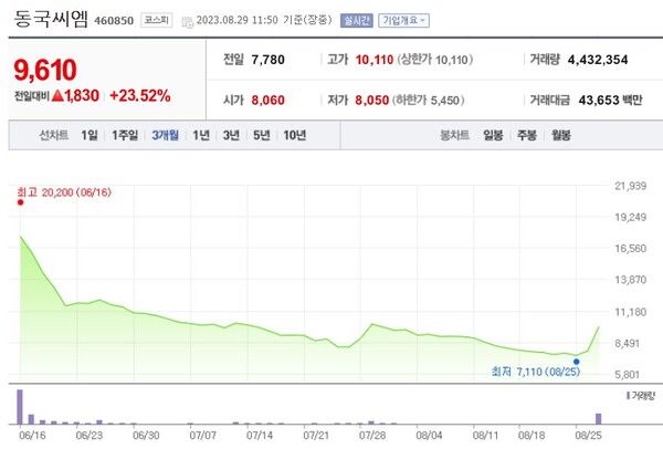2023년 8월 29일, 동국제강그룹사(동국홀딩스, 동국씨엠, 동국제강) 주가가 일제히 올랐습니다. 동국제강그룹이 동국홀딩스를 중심으로 지주회사 체제 구축을 완료하기 위해 동국제강과 동국씨엠 주식을 공개매수하기로 발표하면서 투자자들이 관심을 보인 영향으로 풀이됩니다.