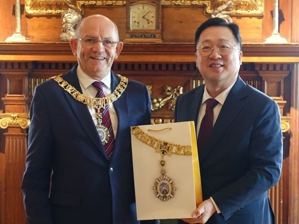 [파이낸셜경제=김영란 기자] 이장우 대전시장은 29일 영국 에든버러 마지막 일정으로 로버트 앨드리지(Robert Aldridge) 에든버러 시장을 예방하고, 향후 문화와 과학 분야의 교류 협력을 강화하자고 제안했다.