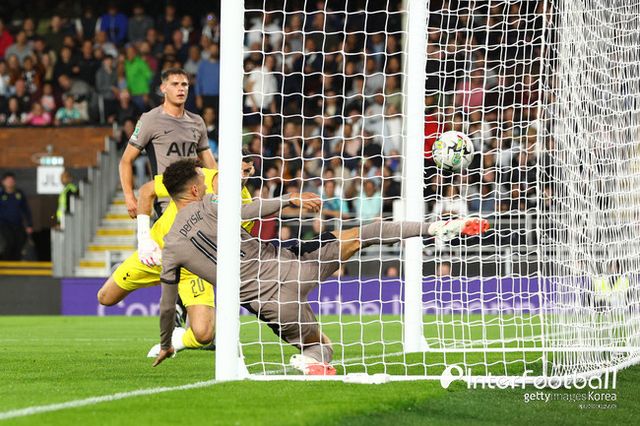토트넘이 후반 시작과 함께 교체 카드를 사용했다. 로 셀소를 빼고 스칼렛을 넣었다. 그리고 후반 6분, 히샬리송의 문전 터닝 슈팅이 수비를 맞고 굴절되면서 골문 쪽으로 향했다. 이를 골키퍼가 손을 쭉 뻗어 쳐냈다.