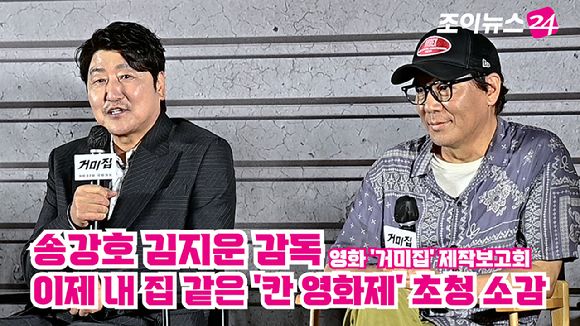 [조이뉴스24 문수지 기자] 배우 송강호, 김지운 감독이 지난 29일 오전 서울 용산구 CGV 용산아이파크몰점에서 열린 영화 '거미집'(감독 김지운) 제작보고회에 참석해 소감을 말하고 있다.
