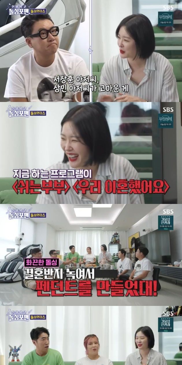 이를 듣던 개그맨 장동민이 "그건 출소할 때 새기는 거 아니냐"라며 너스레를 떨었다. 이어 '돌싱포맨' 멤버인 탁재훈, 이상민, 김준호, 임원희를 향해 "결혼반지 다들 어떻게 했냐"라면서 기습 질문을 던져 폭소를 유발했다.