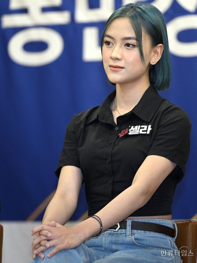 인도네시아 걸그룹 스타비 셸라가 30일 오전 서울 중구 충무아트홀에서 열린 '2023 동반성장 디딤돌 사업 국내' 기자간담회에 참석하고 있다.